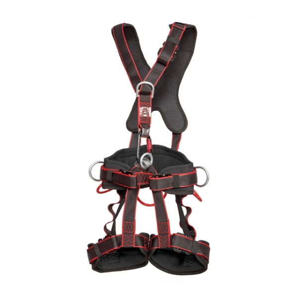 - 1 anel central em resina antideslizante que permite distribuir a carga entre o cinturão e as perneiras, durante os trabalhos realizados totalmente em suspensão;