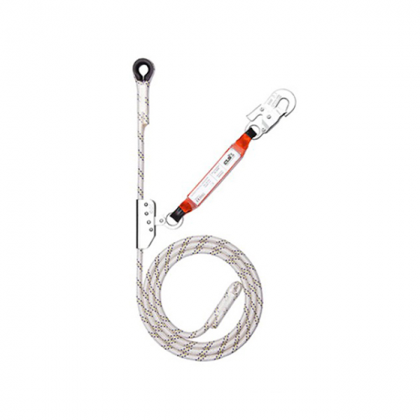 Linha de vida vertical com 15 mts - Linga em poliéster de 12 mm - Absorvedor de energia 100% poliamida - Mosquetão com abertura de 16 mm - Bolsa de transporte incluída