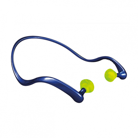 Tampão auditivo com banda Características: - Tampão em espuma de poliuretano com formato ovalado; - Banda fabricada em polietileno; - Embalados em sacos individuais;