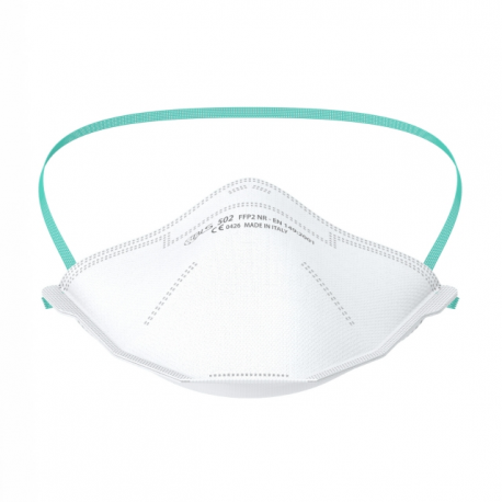 - Máscara descartável FFP2 NR Características: - Protege contra aerossóis sólidos e/ou líquidos irritantes ou ligeiramente tóxicos - Valor de proteção atribuído (VPA) 10 x TLV - Excelente ajuste facial proporcionado pelos elásticos, clip e almofada nasal - Sem válvula, evitando desta forma, se aplicável, propagação de vírus (ideal para a indústria médica ou alimentária) - Descartável - Adaptável a diferentes tipos de rostos - Clip nasal inserido entre as camadas de filtração que se apadapta ao perfil do nariz permitindo uma boa visibilidade e compatibilidade com óculos - Dobrável, permitindo desta forma o armazenamento nos bolsos quando usada em intervalos - Embaladas em saco individual para impedir a contaminação durante a armazenagem