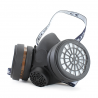 - Meia máscara facial em borracha termoplástica A1 Características: - 2 Filtros laterais (A1) com conexão por rosca - 1 válvula de exalação para facilitar a saída do ar - Antialérgica - Correias elásticas ajustáveis - Compatível com outros EPI's, incluindo viseiras e capacetes de soldadura - Peso: 136g s/filtro | 328gr c/filtro A1 - 1 unidade por caixa