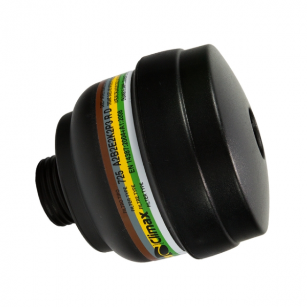 Filtro tipo A2 B2 E2 K2 P3: - TIPO A (CASTANHO) Contra gases e vapores orgânicos com ponto de ebulição > 65ºC (diluentes e hidrocarbonetos); - TIPO B (CINZENTO) Contra gases e vapores inorgânicos, exceto óxido de carbono; - TIPO E (AMARELO) Contra dióxido de enxofre e alguns gases e vapores ácidos; - TIPO K (VERDE) Contra amoníaco e alguns derivados aminados; - TIPO P (BRANCO) Contra aerossóis sólidos e líquidos não voláteis;