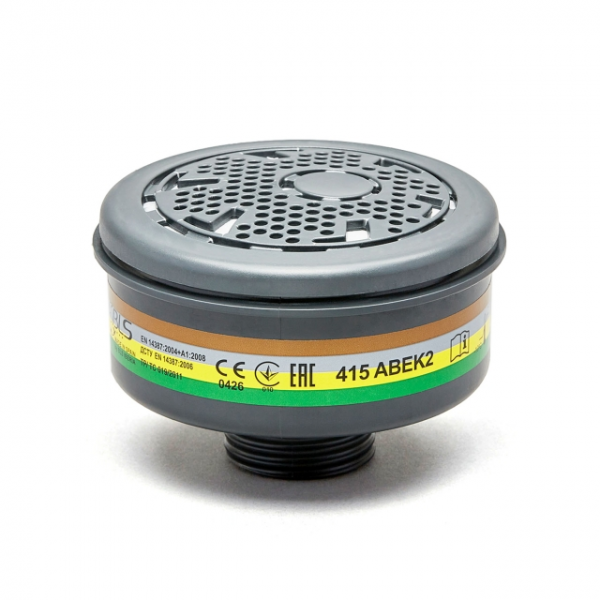 Filtro tipo A2B2E2K2: - Gases e vapores orgânicos, inorgânicos, ácidos, amoníaco e seus vapores, classe 2