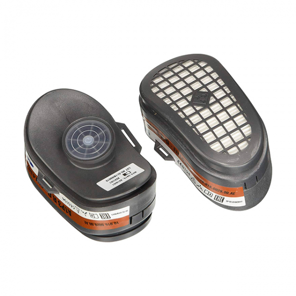 Filtro tipo A2B2E2K2HgP3 R: - Gases e vapores orgânicos, inorgânicos, ácidos, amoníaco, mercúrio e seus vapores, classe 2 e partículas tóxicas