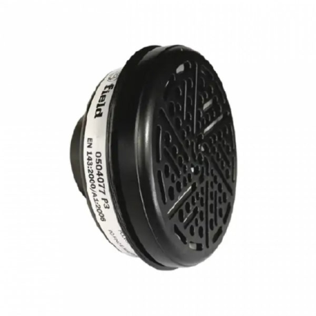 FILTRO P3 para partículas: - TIPO P (BRANCO) Contra aerossóis sólidos e líquidos não voláteis; - A união entre o filtro e a máscara é realizada através de sistema baioneta;