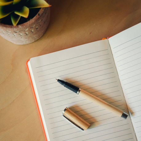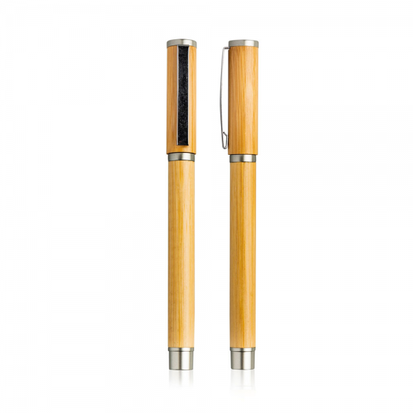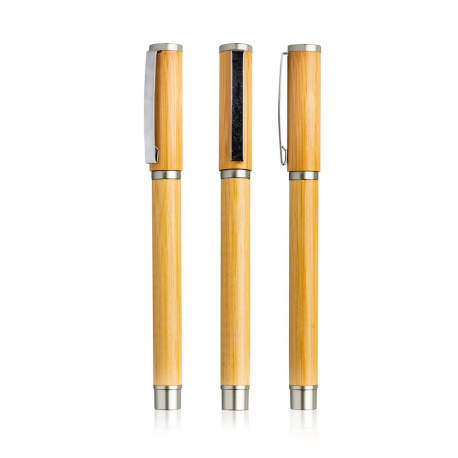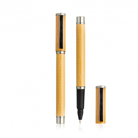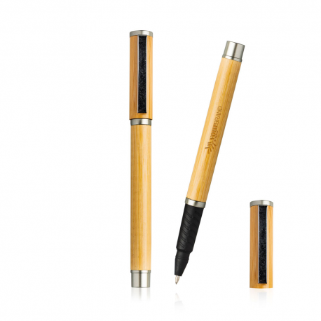 Roller em bambu. Inserida na gama eco, esta roller tem sistema tampa e escrita azul.