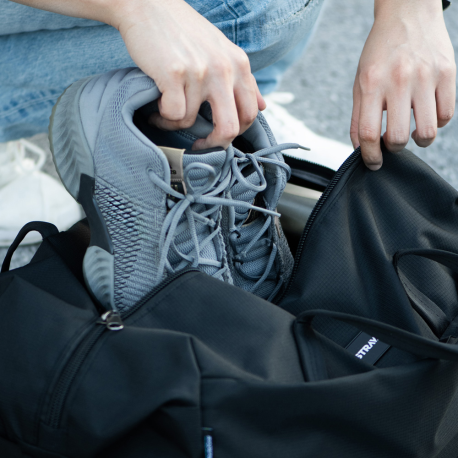 Saco fim de semana em RPET Ocean Bound . Este saco tem um compartimento principal com fecho, dois compartimentos internos, um bolso frontal com fecho, e uma fita para trolley. A alça ajustável acolchoada proporciona um conforto inigualável, tornando-a perfeita para qualquer aventura desportiva ou escapadela de fim de semana. Este saco é confecionado em Tecido Reciclado de Plástico Oceânico. Cada peça é produzida a partir de plástico recolhido do oceano, contribuindo diretamente para a redução do desperdício plástico nos nossos mares. Ao escolher este saco, está a desempenhar um papel ativo na proteção do nosso precioso ambiente aquático.