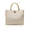 Saco em juta, com canvas 100% algodão. Fecha com botão, o que torna o acesso ao interior fácil e o saco mais seguro. A mistura de materiais concede-lhe um ar mais requintado. Ideal para saco de compras reutilizável.