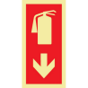 Sinal de extintor com seta para baixo