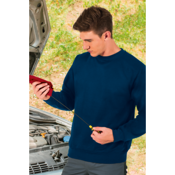 100% poliéster. Interior felpa, toque agradável, gola redonda, sem punhos.