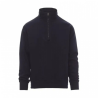 - Camisola de homem, com meio fecho, de plástico com cursor em metal, manga na cava, punhos e cós de canelado elástico, costuras reforçadas.