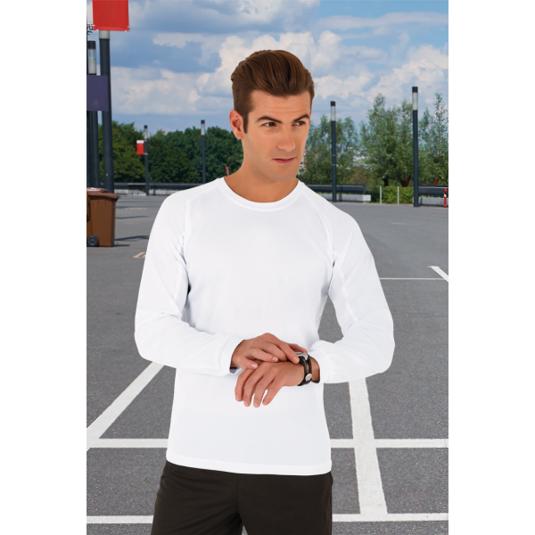 Manga comprida ranglan com costura e punho.
