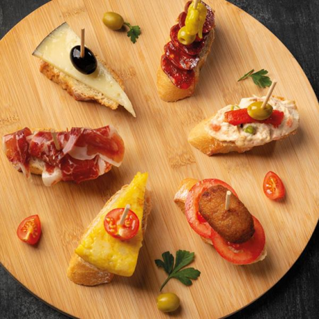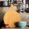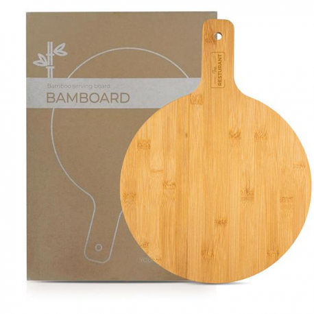 Tábua redonda em bambu. Na nossa nova coleção de casa e restauração de bambu, pode encontrar a tábua Bamboard. Apenas construída em bambu, o seu formato redondo com uma pega para suporte torna-a ideal para servir uma pizza, uma tábua de queijos ou mesmo o típico Couvert. Resistente e apto para contacto alimentar.