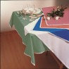 Toalha de mesa cor média anti-nódoa com bainhas 2cm com cantos sobrepostos.