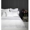 Toalha de mesa cor escura anti-nódoa com bainhas 2cm com cantos sobrepostos.