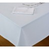 Toalha de mesa cor média anti-nódoa com bainhas 2cm com cantos sobrepostos.