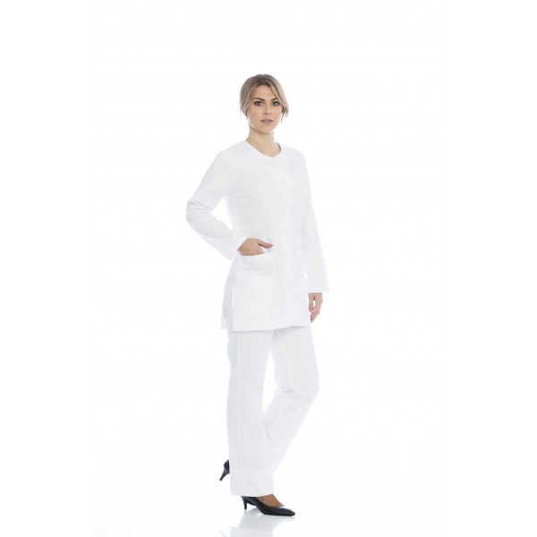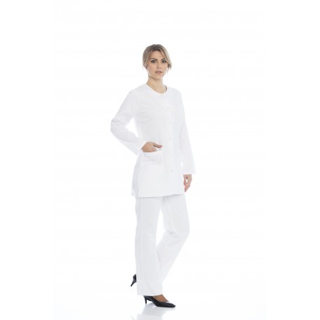 Túnica senhora em sarja poliéster-algodão de manga comprida.
