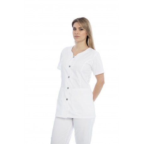Túnica senhora em sarja poliéster-algodão de manga curta