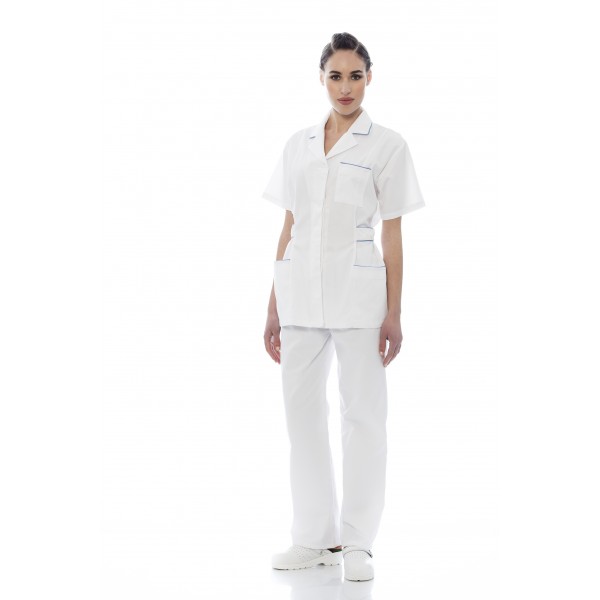 Túnica senhora em sarja poliéster-algodão de manga curta.