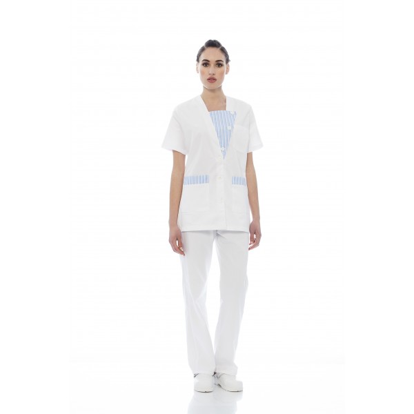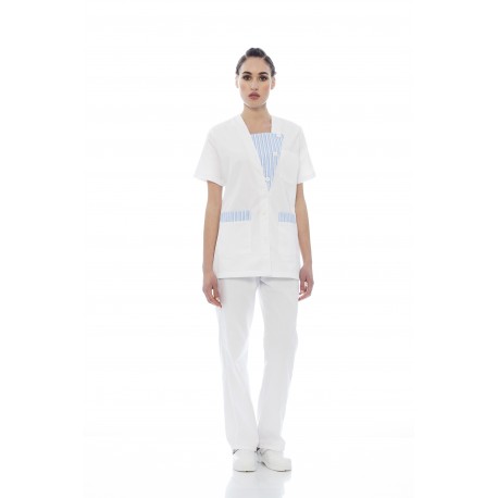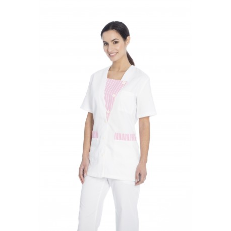 Túnica senhora em sarja poliéster-algodão de manga comprida.
