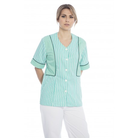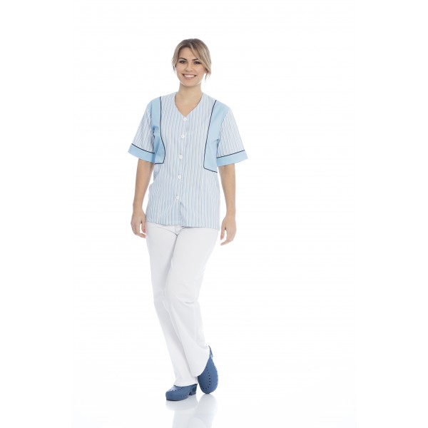 Túnica senhora em sarja poliéster-algodão de manga comprida.