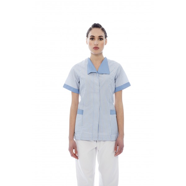 Túnica senhora em risca poliéster-algodão.