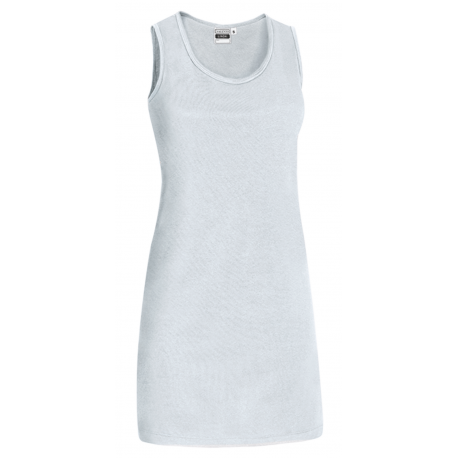 Alças largas e gola redonda.